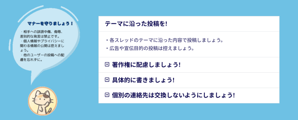 投稿時には、フォーラムページの上部にあるこちらの注意書きを守ってくださいね!